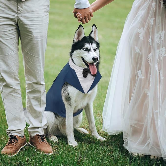 - Two Piece Set: Formal Dog Tuxedo and Dog Wedding Bandana Set, can be used seprately. Bandana for comfortable wear featuring neck or bow tie along with decorative buttons to show off your best friend's personality