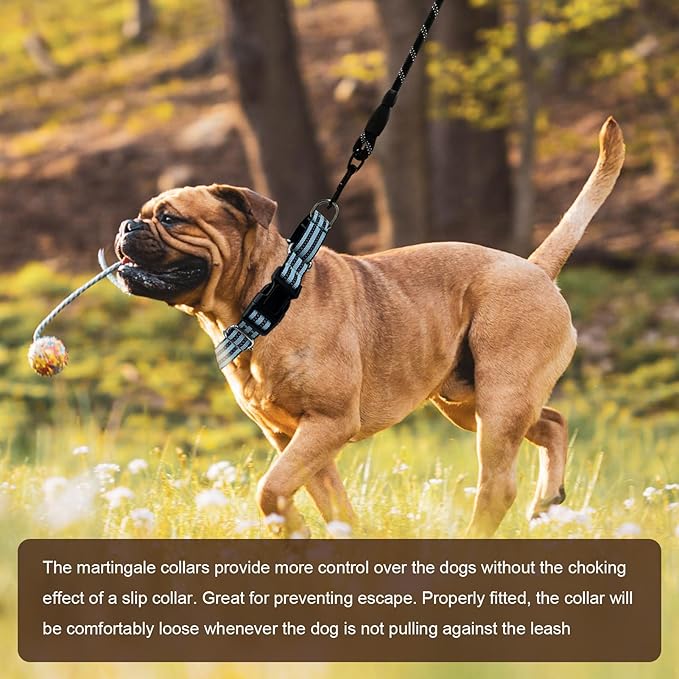 - 【Durability】Soft nylon dog collar and heavy-duty hardware won't easy loose or fray; Strict pulling test conducted before production. Properly fitted, the martingale dog collar will be comfortably loose whenever the dog is not pulling against the leash