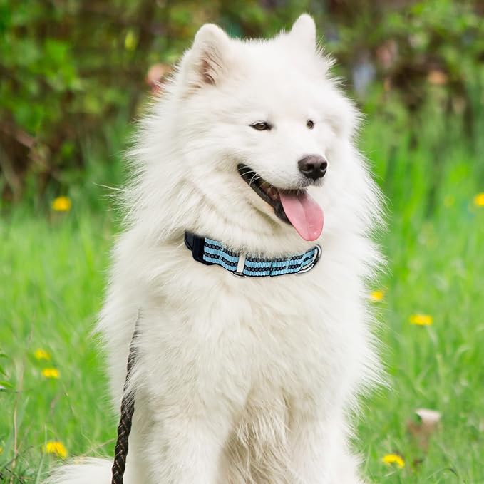 Hikiko Martingale Dog Collars Reflective Nylon Dog Collar with Quick Release Buckle Adjustable Training No Slip Dog Collar (Small, Sky Blue)