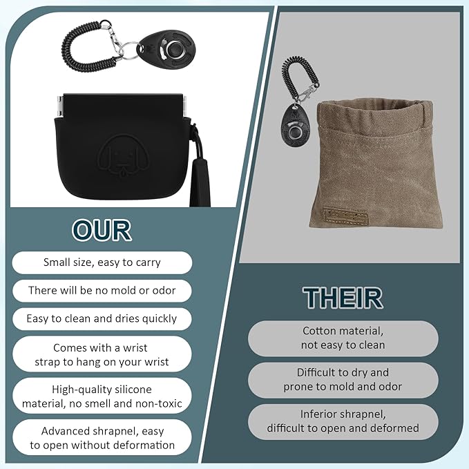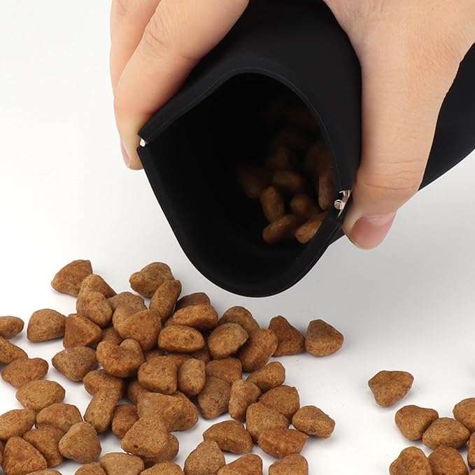 WALLFID Silicone Dog Treat Pouch, Auto Closure, with Pet Training Clicker, Walking Bag for Dog and Cat, Pocket Size, Easy to Clean, Odorless, Travel Bag (Black)