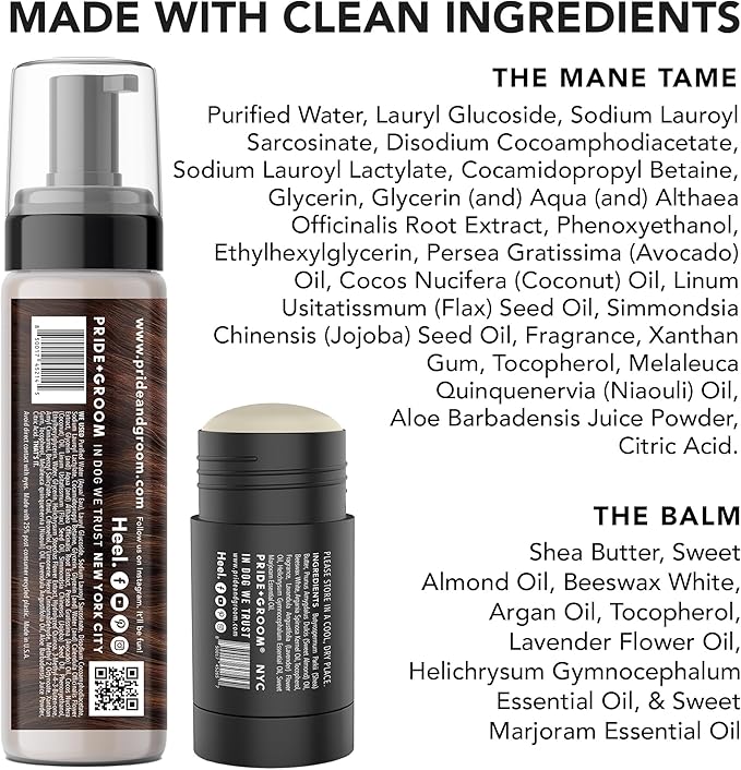 - Product Benefits : Pride and Groom The Tool Kit – Dog Grooming Gift set of 7.1oz of Foaming Waterless Shampoo, 2.5oz of Moisturizing Balm, and a Versatile Brush to Cleanse, Moisturize, Detangle and More in Between Baths Pride and Groom The Tool Kit – Dog Grooming Gift set of 7.1oz of Foaming Waterless Shampoo, 2.5oz of Moisturizing Balm, and a Versatile Brus… See more