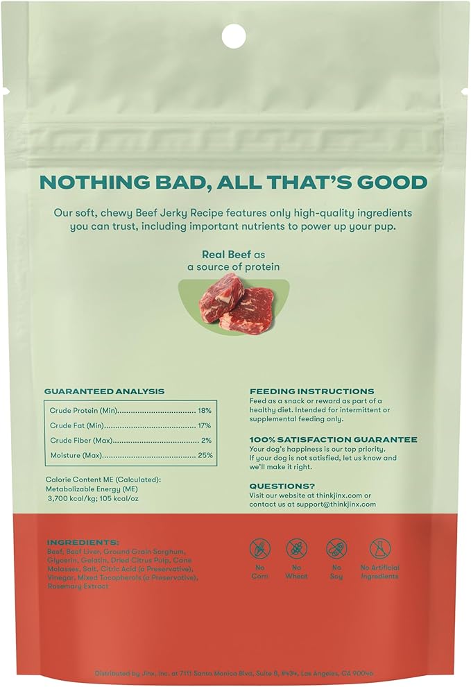 Jinx Tenders Beef Jerky Dog Treats, All Natural Ingredients, Soft and Chewy, Low-Calorie, Slow-Smoked Beef & Liver, No Fillers, 5oz, 6 Pack