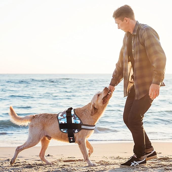 Dogline Dog Harness, Reflective No-Pull Adjustable Vest with Handle for Walking, Training, Breathable, No - Choke Harness for Small, Medium or Large Dogs Room for Patches Girth 33"-46" in Blue Camo