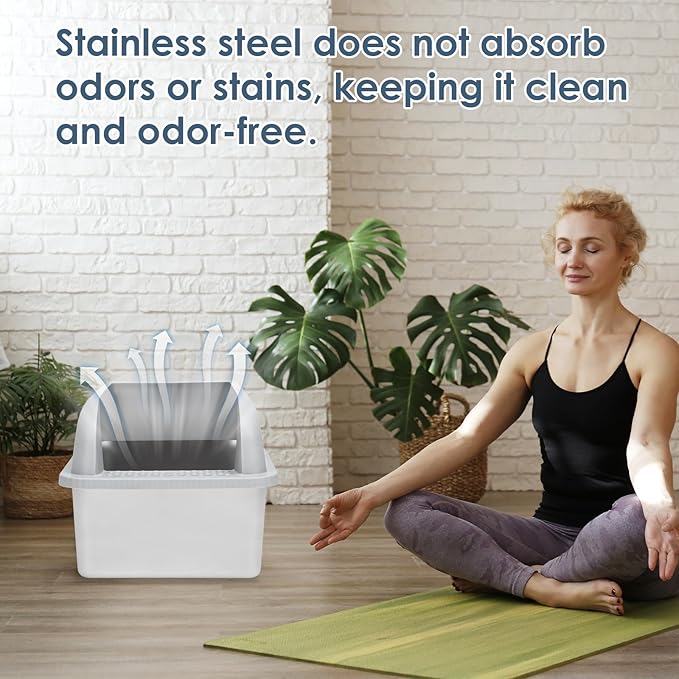 - Doesn't Absorb Odor: Cleaning the high walled stainless steel litter box for cats is very easy as waste slides off the smooth and nonstick surface effortlessly, leaving no lingering odors behind. Sturdy stainless steel won't get rusts and scratches where odor can harbor like the plastic litter box does, creating a clean and hygienic environment for your cats