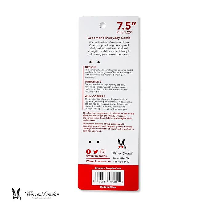 Warren London Copper Everyday Comb for Dog | 7.5 inches | Rounded Tips Prevent Irritation | Comfort Control Durability and Detail | Fine/Coarse Deshedding Demat Tool