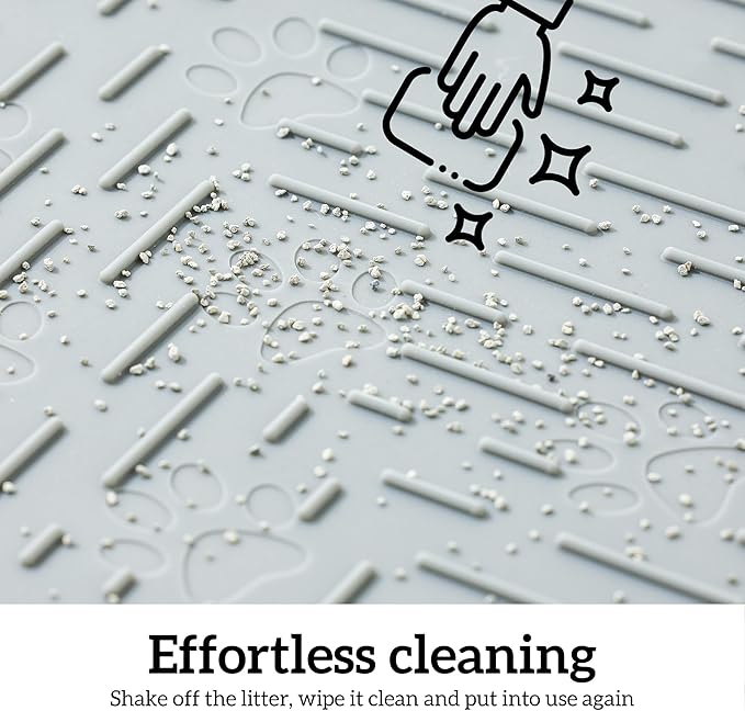- Premium Grade Silicone:Non-porous and waterproof silicone prevents odor and stains from setting in. This cat litter mat feels soft and gentle to the touch. Its durable material allows the mat to bounce back to its original shape effortlessly, even after repeated folding.