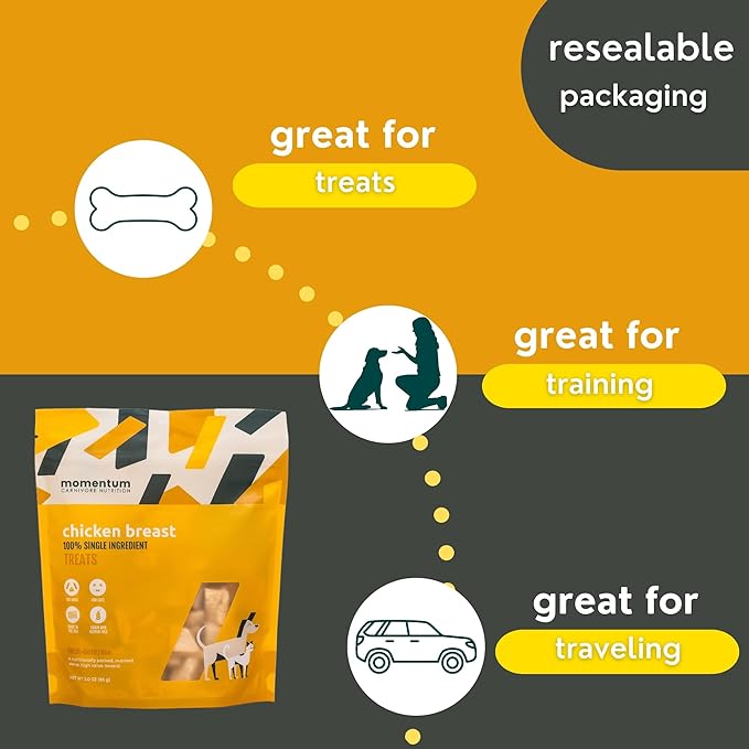 Momentum Carnivore Nutrition Freeze-Dried Chicken Breast Dog Treats – Single-Ingredient, Dog & Cat Treats – High-Protein, Grain-Free– 3 oz Bag
