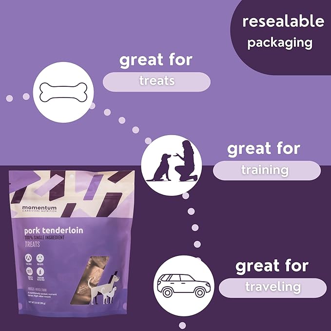 Momentum Carnivore Nutrition Freeze-Dried Pork Tenderloin Dog Treats – Single-Ingredient, Dog & Cat Treats – High-Protein, Grain-Free– 3.5 oz Bag