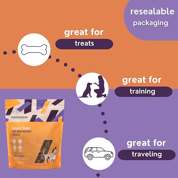 Momentum Carnivore Nutrition Freeze-Dried Bison Liver Dog Treats – Single-Ingredient, Dog & Cat Treats – High-Protein, Grain-Free– 4 oz Pack