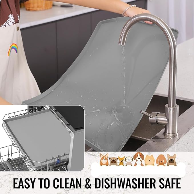 - Less Mess on The Floor: Is your pet a sloppy eater, constantly dropping food or dripping water from his mouth? Our silicone dog food mat for floors waterproof, dog water bowl mat for messy drinkers and pet bowl mats for food and water set up a separate feeding area for your pet and keep spilled food and water from ending up around the space which makes cleanup easier for your pet's eating areas. The less workload you have on the cleaning, the more playtime you can spend with your puppy