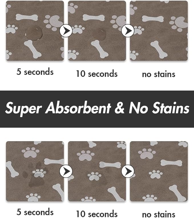 - 【Absorbent & No Stains】Perfect dog accessories, this dog food mat prevents water spills. With superb absorption and quick-drying properties, it keeps pet paws dry, even for messy drinkers. No traces are left when food or water falls on the pet food mat, ensuring clean and dry floors while keeping your pet's feeding area comfortable and safe