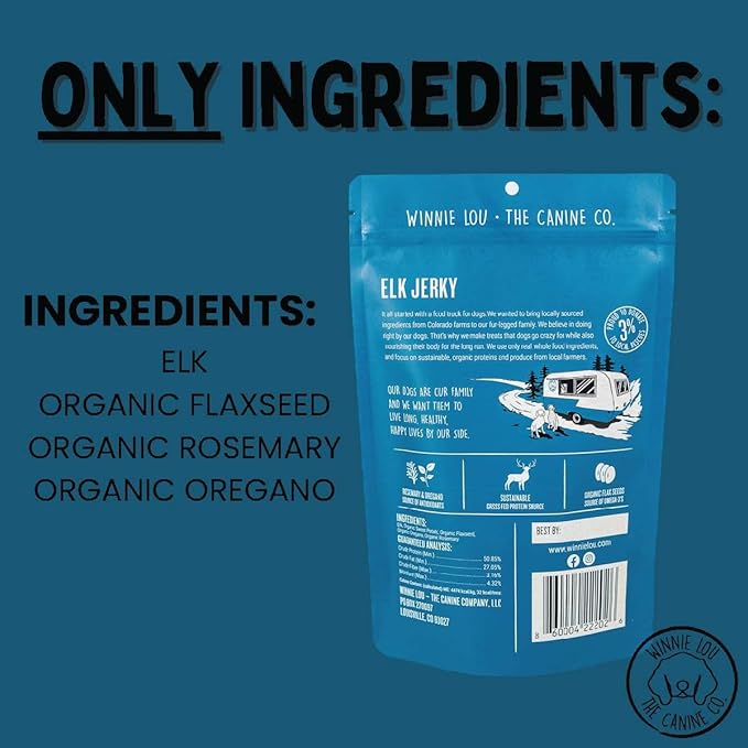 Winnie Lou Elk Jerky Dog Treats – Limited Ingredient, Human Grade, Training Treats for Small, Medium & Large Dogs, Made in USA (2 Pack)