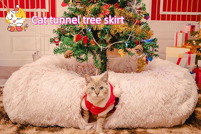 XxingSheep Extra Large Cat Tunnel Bed for Indoor Cats Peekaboo Cat Cave Donut with Center Mat,Pinkish White
