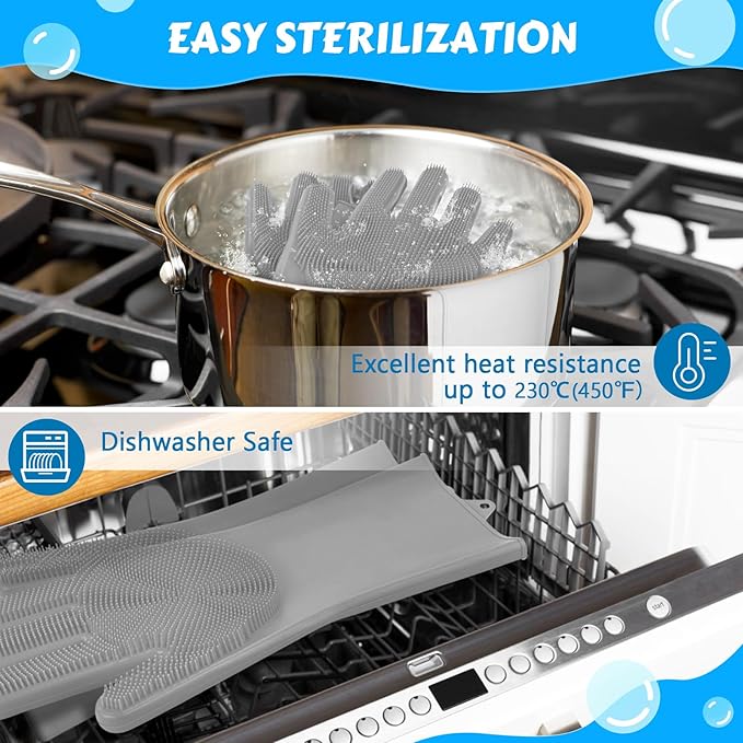- 100% SILICONE & HEAT RESISTANT : Made of premium silicone, it is non-toxic, high-toughness, and has good elasticity. Excellent heat resistance up to 450°F, so the cat washing gloves can be sterilized with boiling water while having a pet bathing. Never worry about getting scalded.