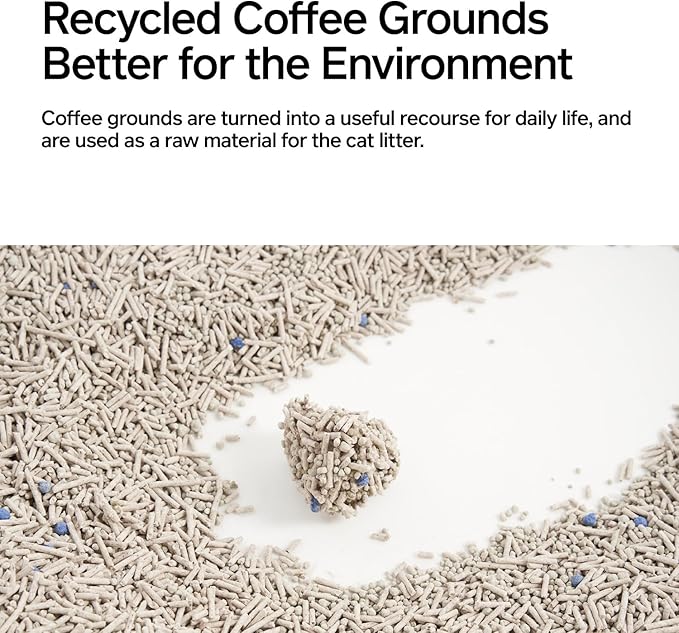 - 【Recycled Coffee Grounds】Better for the Environment.Coffee grounds are turned into a useful recourse for daily life, and are used as a raw material for the cat litter.With true Coffee Scent,quick Removal of Unpleasant Odors.The real coffee aroma covers unpleasant odors. Without addition of flavor, it is mild and non-irritating.