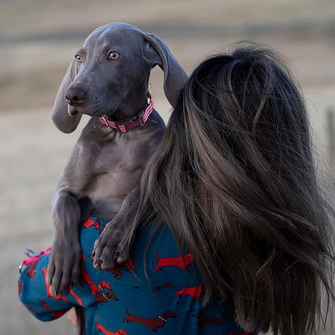 Hikiko Martingale Dog Collars Reflective Nylon Dog Collar with Quick Release Buckle Adjustable Training No Slip Dog Collar (X-Large, Pink)