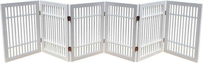 Pet Dog Gate Strong and Durable Freestanding Folding Acacia Hardwood Portable Wooden Fence Indoors or Outdoors by Urnporium (White Pet Gate, 6 Panel 24" Tall)