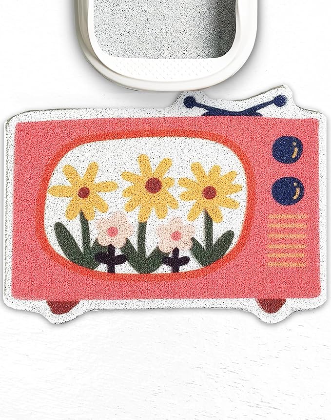 Lukamoo® Cute Cat Litter Mat (30''x20''), Extra-Large/XL, for Kitty Litter & Cute Cat Litter Box, Litter Trapping Mat (Large (30'' x 20''), Retro Television)