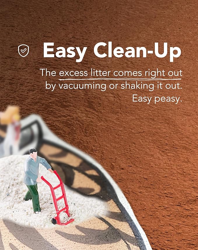 - ✨ Easy Clean-Up: You can clean Lukamoo’s litter mat by vacuuming or shaking it. The excess litter comes right out. Easy peasy.