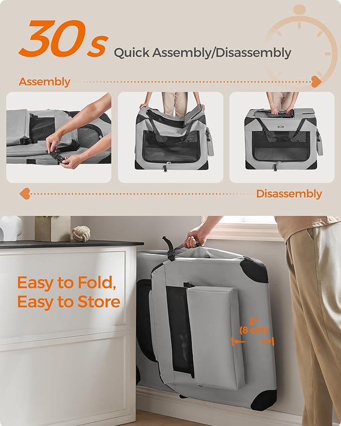 - 【ANTI-ESCAPE & STRONGER】Featuring self-locking zippers that ensure pets can't open it from the inside, the travel dog crate enhances safety while traveling. The thick steel frame and Oxford fabric are scratch- and tear-resistant for prolonged service life