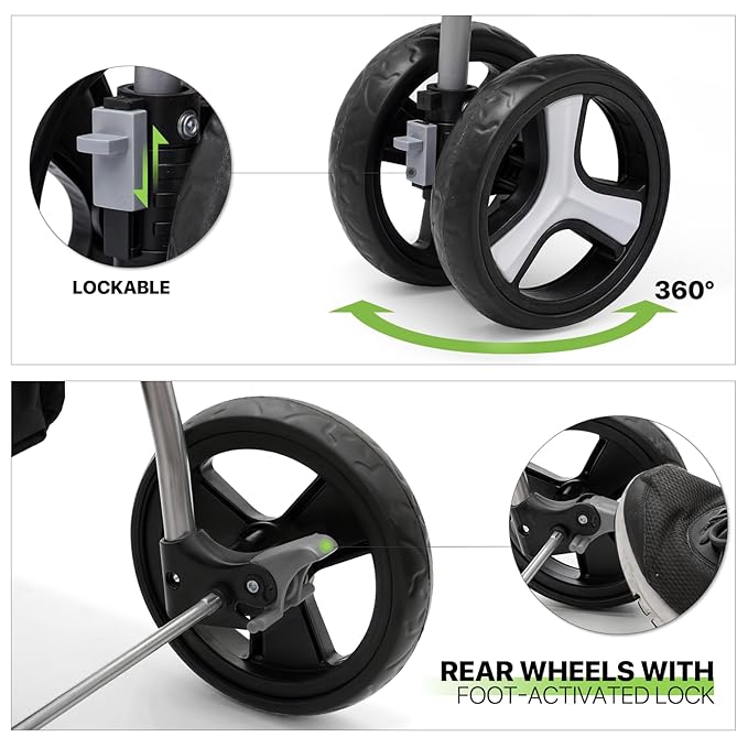 - Advanced Wheel Suspension, Braking & Safety System: Designed for stability, maneuverability, and control, our pet stroller features 360Β° swivel front wheels for effortless navigation, while the shock-absorbing rear wheels ensure a smooth, stable ride on various terrains. For added safety, the dual rear-wheel braking system provides a secure stop on slopes and uneven surfaces, giving pet owners peace of mind during strolls