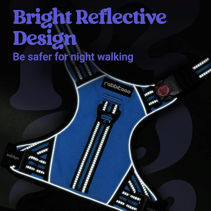 rabbitgoo Dog Harness for Large Dogs, No Pull Pet Harness with Soft Padded Handle, Adjustable Reflective Vest with 3 Buckles, Easy Walking Harness with 2 Leash Clips, Light Blue, L