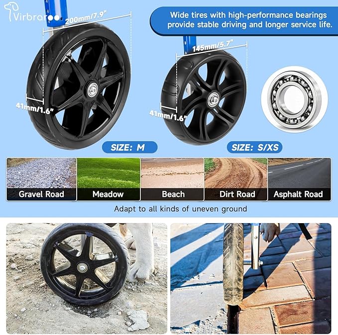 - Long-Lasting Precision Wheels for Smooth Mobility: Equipped with 7.9" all-terrain wheels and high-quality bearings, this dog wheelchair for back legs ensures quiet, durable performance on grass, pavement, or indoor floors. Ideal for pets with limited mobility due to arthritis, paralysis, or injury, providing smooth and stress-free movement.