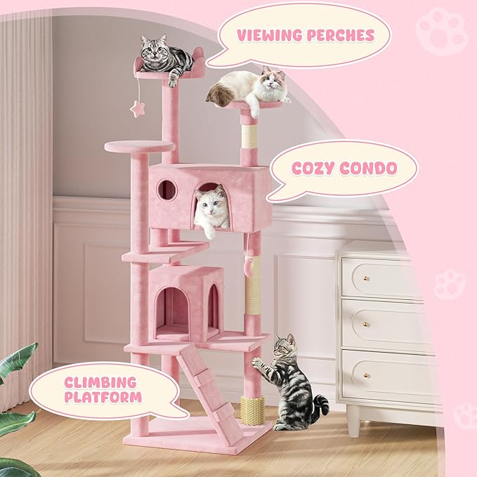 Magshion Cat Tree 77" Cats Tower for Indoor Cats, Multi-Level Cat Condo with Scratching Post, Top Perch, Sisal Board and Dangling Ball, Cat Stand Jumping Platform Kittens Pet Play House (Pink)