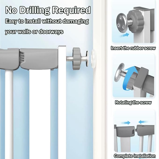 - 【Durable & Convenient】Our cat gate are made of premium steel material, the all steel design is durable and convenient with a walk-through door. Certified to both CPC and ASTM standards. You no longer have to worry about your dog jumping over the gate or pushing it down, and hurting your child.