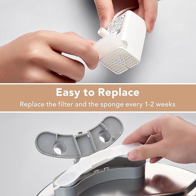 - To maintain clean and healthy water, replace the carbon filter every 1–2 weeks—weekly during warmer months. The foam filter should be replaced every 2 months. Regular replacement helps ensure fresh water for your pet and keeps the fountain working properly