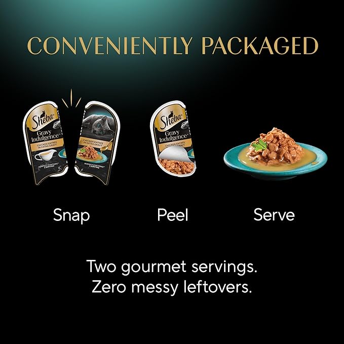 - Indulgent Recipe: Sheba Gravy Indulgence features cuts of Chicken or cuts in Beef covered in a thick, decadent gravy your feline will love and love you for