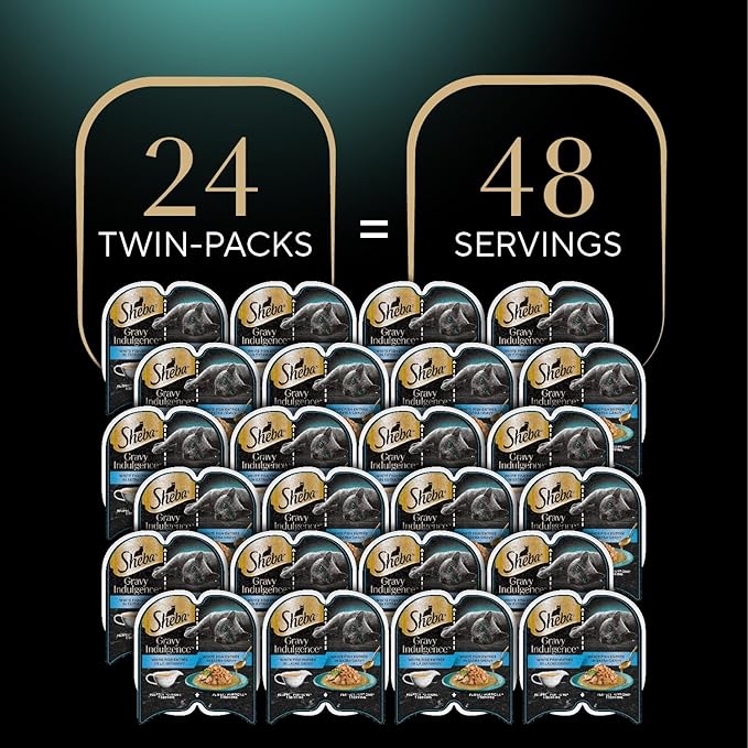 Sheba Gravy Indulgence Adult Wet Cat Food Whitefish Entree in Extra Gravy, 2.6 oz. Twin-Pack Trays (24 Count, 48 Servings)