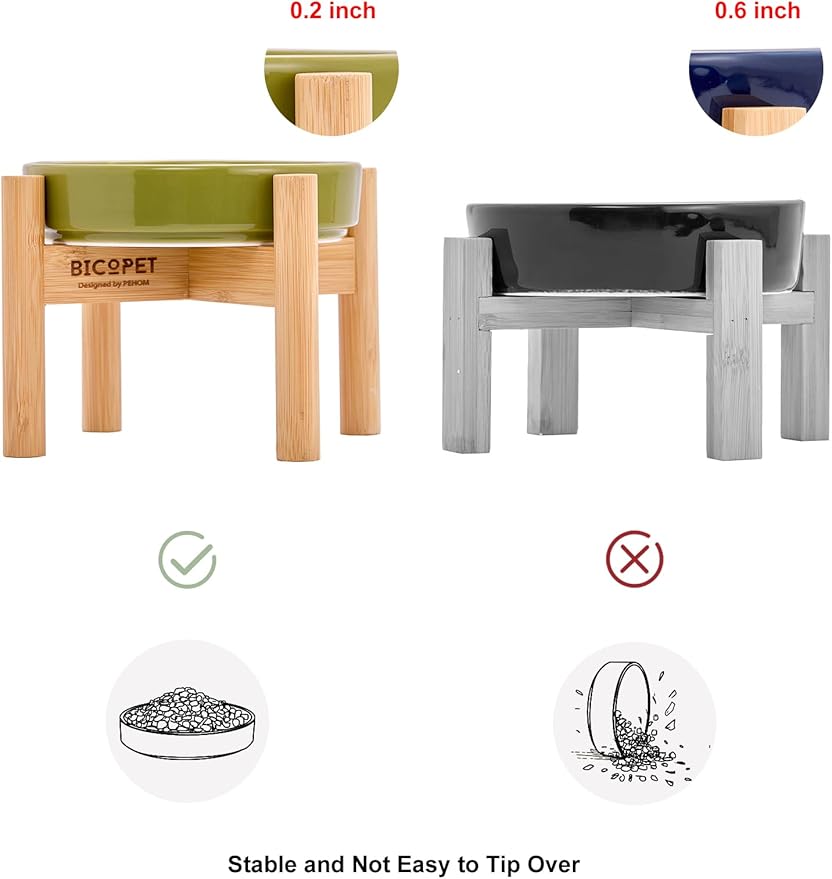 - [STABLE BAMBOO STAND BUILT TO LAST] Unlike flimsy or breakable stands, ours is made from bamboo with a reinforced design that resists damage and wear. The elevated position aids digestion while keeping the feeding area tidy and stylish.