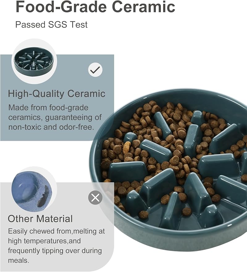 - [SUPERIOR STONEWARE—STRONGER, SAFER, LONGER-LASTING] Crafted from premium-grade stoneware, this bowl is stronger and more durable than standard ceramic slow feeders. Chip-resistant, lead-free, and vet-recommended—built to stand up to daily use without sacrificing safety.