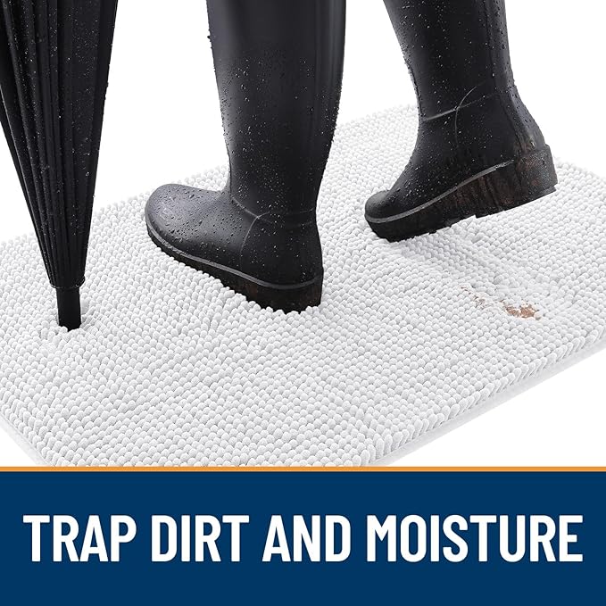 OLANLY Dog Door Mat for Muddy Paws 30x20, Absorbs Moisture and Dirt, Absorbent Non-Slip Washable Doormat, Quick Dry Chenille Mud Mat for Dogs, Entry Indoor Entryway Carpet for Inside Floor, White