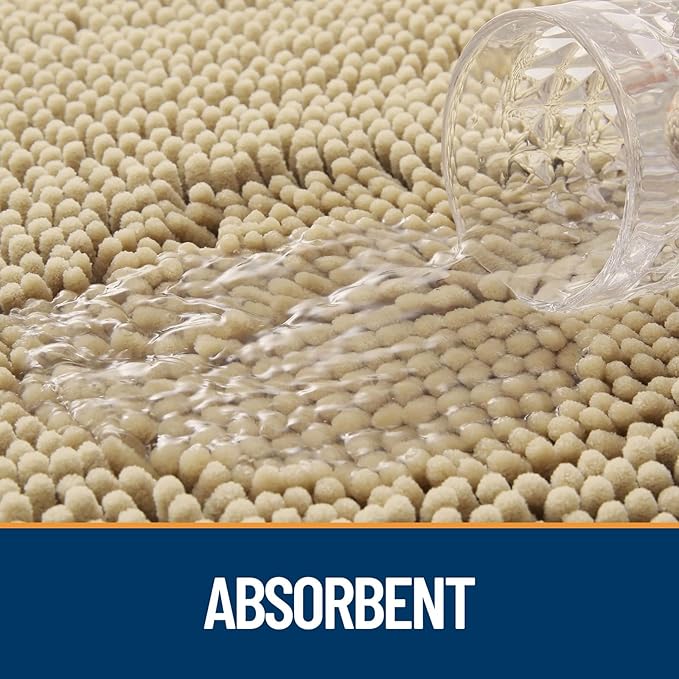 OLANLY Dog Door Mat for Muddy Paws 59x35, Absorbs Moisture and Dirt, Absorbent Non-Slip Washable Doormat, Quick Dry Chenille Mud Mat for Dogs, Entry Indoor Entryway Carpet for Inside Floor, Beige
