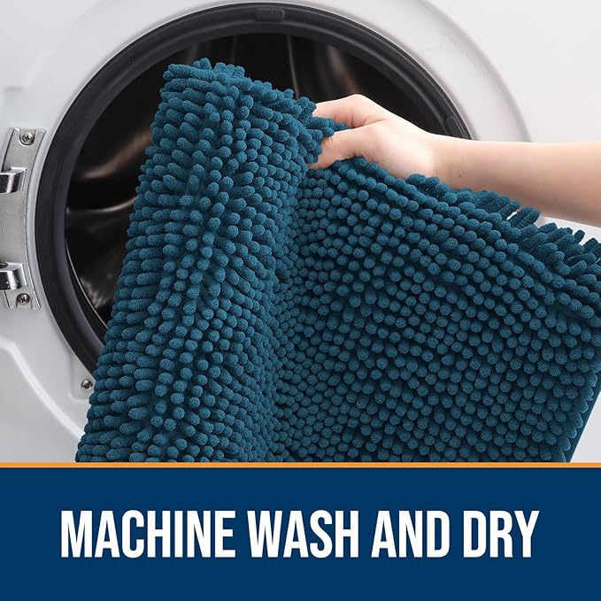 OLANLY Dog Door Mat for Muddy Paws 48x30, Absorbs Moisture and Dirt, Absorbent Non-Slip Washable Doormat, Quick Dry Chenille Mud Mat, Entry Indoor Entryway Carpet for Inside Floor, Atlantic Blue