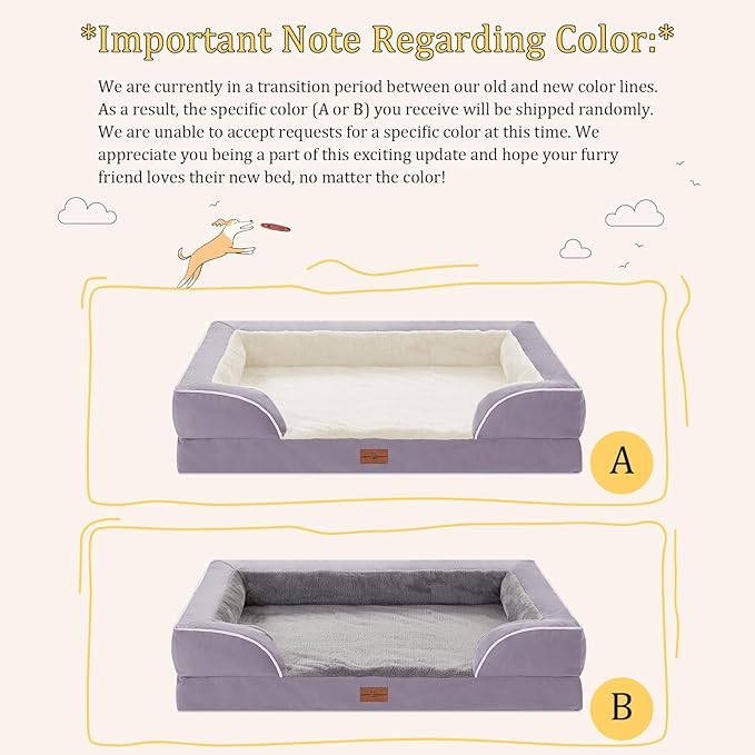 Comfort Expression Orthopedic Dog Bed for Extra Large Dogs 45x35 Inch, Waterproof Supportive Egg Crate Foam XL Pet Bed with Removable Bolsters, Dog Couch with Washable Cover & Non-Slip Bottom, Purple