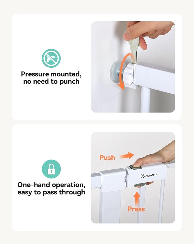 - Exceptional Customer Service - If you encounter any issues or have questions about our baby gate, please don't hesitate to reach out to our dedicated customer service team. We're committed to providing a satisfactory response and solution for you. NOTICE: please measure your openings before purchasing to ensure proper fit