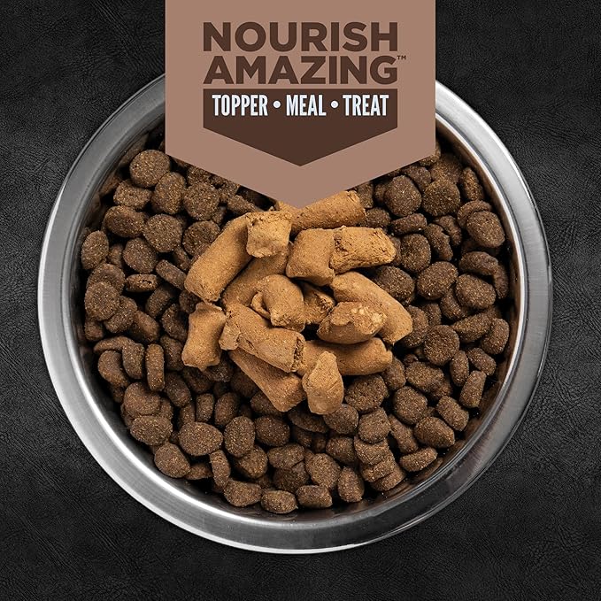 - Add freeze-dried dog food on top of their favorite ORIJEN kibble for a flavorful and nourishing dog food topper.