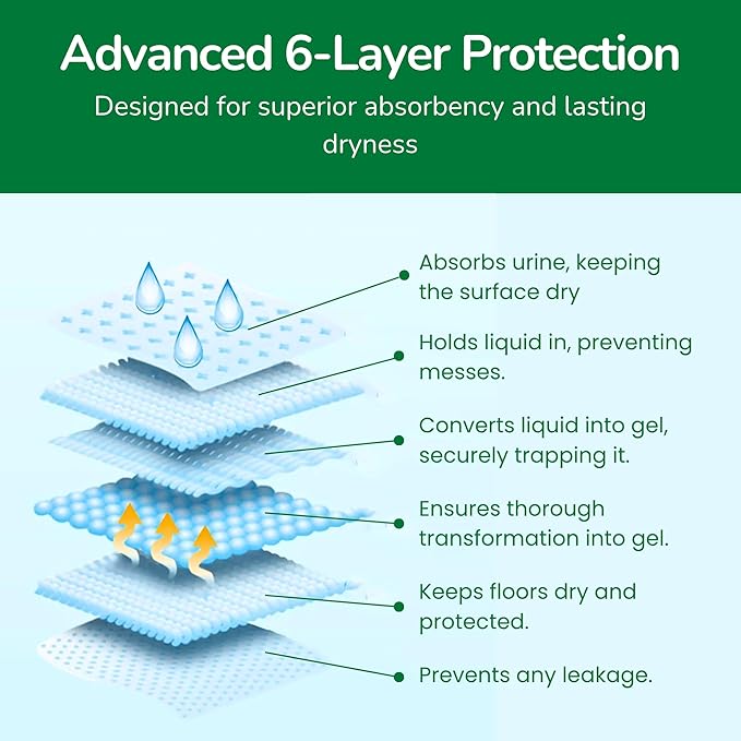 - 6 Layers of Absorbency - Pet N Pet’s pads offer 6 layers of protection, keeping leaks away and your pet’s space dry and comfortable.