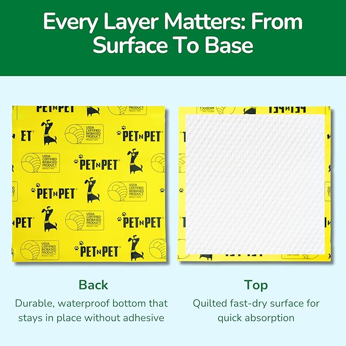 Pet N Pet 50 Counts Pee Pads for Dogs, 48% USDA Certified Plant Based Puppy Pee Pads, Unscented Dog Pad, Leak-Proof Training Pad for Dogs