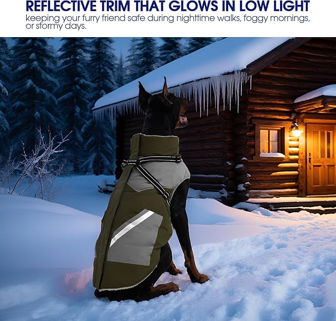 - SAFE & VISIBLE IN LOW LIGHT:Safety is a priority with reflective dog coat detailing strategically placed on the back of this dog jacket. This enhances your dog’s visibility during early morning or late-night dog walking activities, giving you peace of mind during urban walks or trail adventures. Whether you’re hiking, running, or simply strolling around the neighborhood, this reflective dog jacket helps you and your dog stay seen and safe