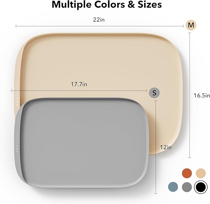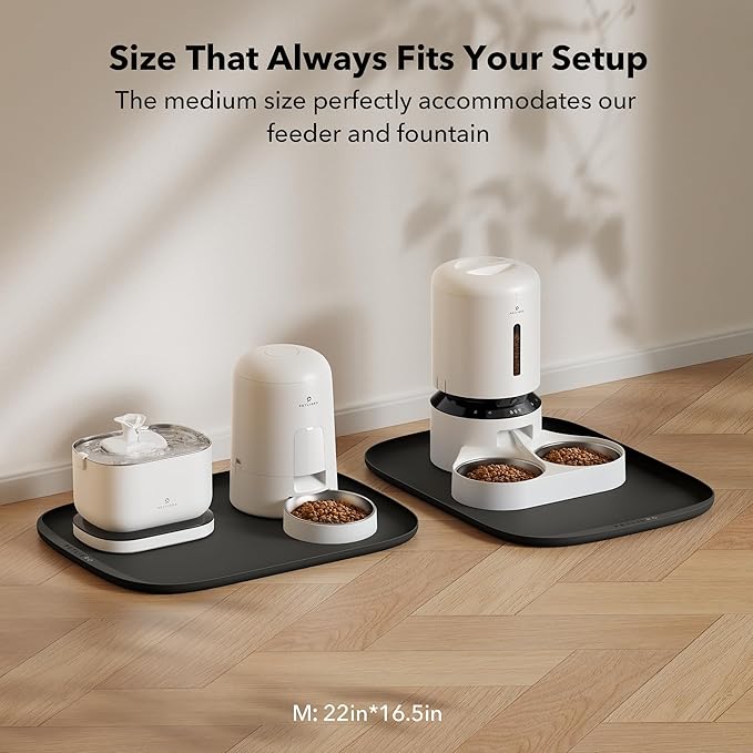 - A Perfect Fit For Every Pet And Bowl: With a range of sizes and colors to choose from, the Cove food mat is a versatile addition to any pet feeding station. The small mat measures 17.7 × 12 in, while the medium option measures 22 × 16.5 in. Not only do they fit perfectly with the PETLIBRO range of smart feeders and fountains, but they're compatible with various bowls and accessories too.