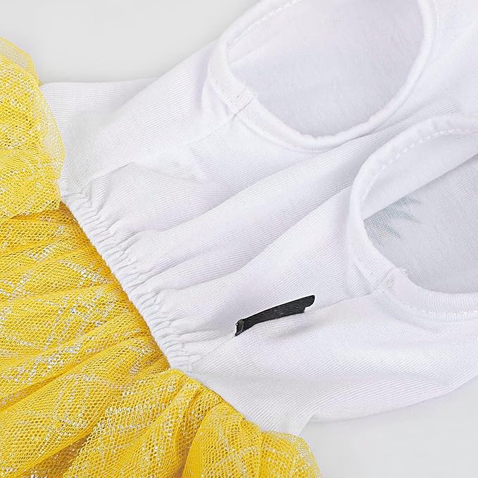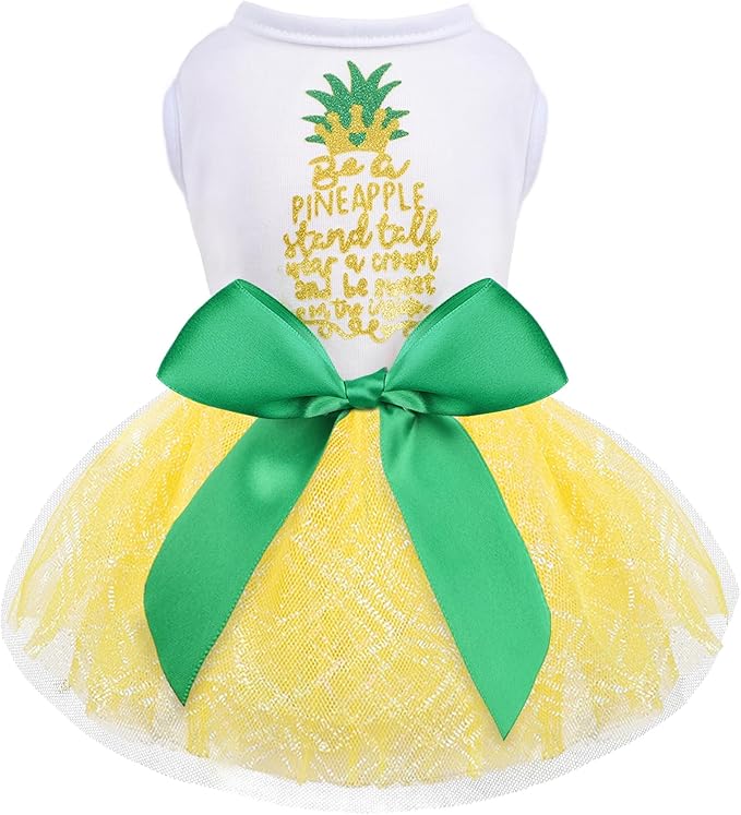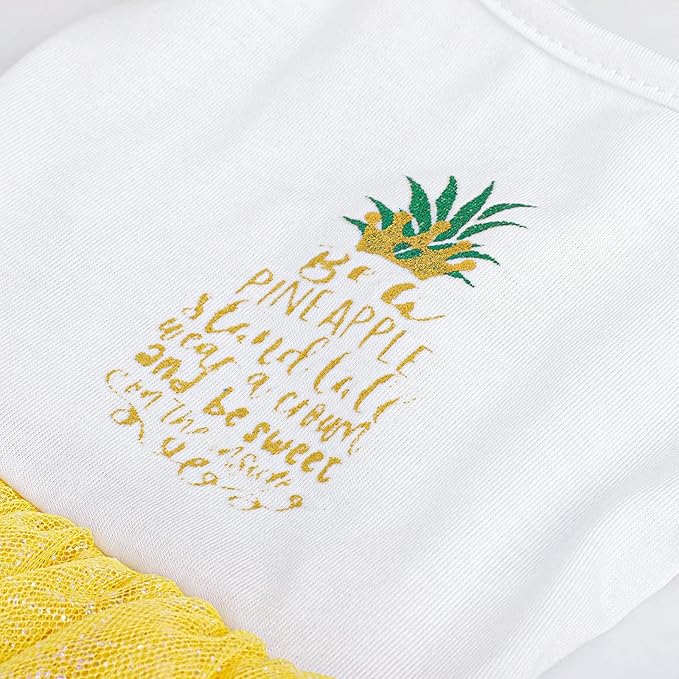 - 【Design】 Adorable pet dress with yellow color tulle hem tutu and “Pineapple” print on back, round neck, sleeveless, which make your baby will be a charming princess.