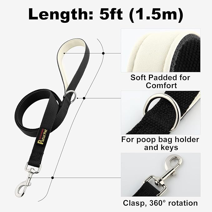 - The leash is 5ft or 150cm long, a perfect length to walk your dog. The XXS and XS sizes are 3/4β or 2.0cm wide, and the S, M, and L sizes are 1β or 2.5cm wide. The soft-padded handle ensures your grip remains comfortable, even during those energetic walks. Additionally, the D-ring on the handle provides a handy spot for hanging keys or accessories, adding convenience to your walks.