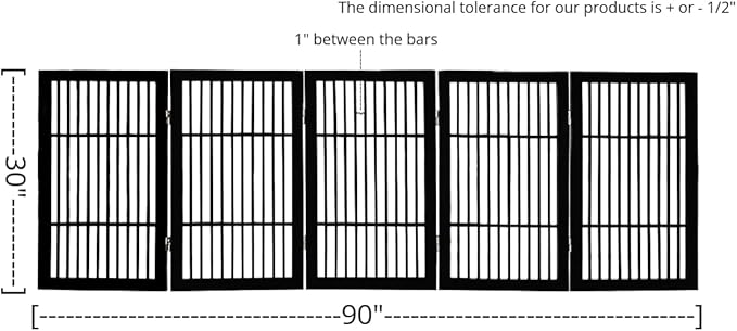 - This is a solid wood pet gate. The distance between the vertical bars is 1" This dog gate can be used on the porch outdoors. Urnporium Wooden freestanding pet gates are versatile barriers designed to keep pets confined to specific areas of the home while maintaining an attractive aesthetic. Constructed from durable wood, these gates feature a charming design that complements home decor and can easily be moved to different locations as needed.