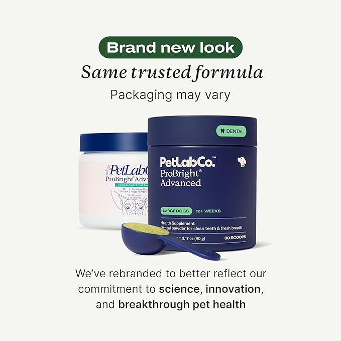 PetLab Co. ProBright Advanced Dental Powder - Dog Breath Freshener - Teeth Cleaning Made Easy – Targets Tartar & Bad Breath - Packaging May Vary - Formulated for Large Dogs