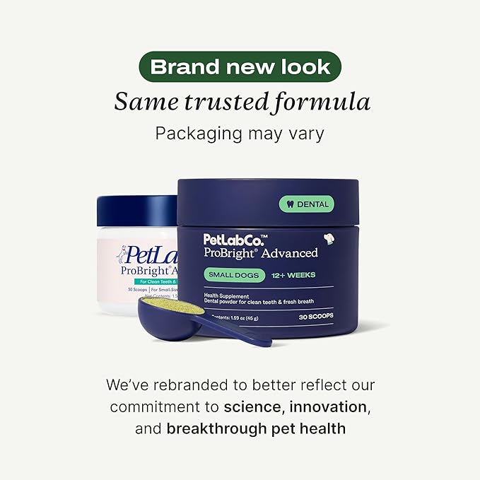 PetLab Co. ProBright Advanced Dental Powder - Dog Breath Freshener - Teeth Cleaning Made Easy – Targets Tartar & Bad Breath - Packaging May Vary - Formulated for Small Dogs