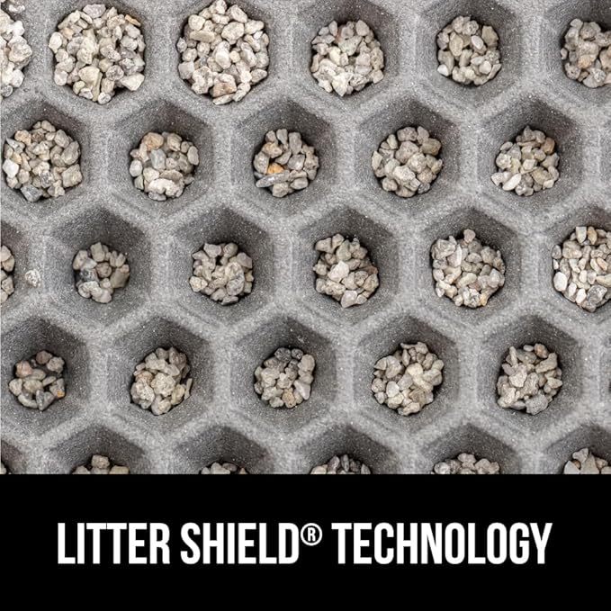 - LITTER SHIELD TECHNOLOGY TRAPS LITTER: the Gorilla Grip mat traps even more litter as your cat exits the litter box; with our Litter Shield Technology, litter that is stuck to your cat's paws will be captured within the large honeycomb holes on the top layer of the mat; the litter then falls through the holes to become trapped in the bottom, leak proof layer